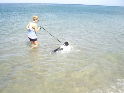 We proceeded to entice Oliver to go into the water. As he’s part Beagle and part Spaniel we figured he would take to the water like a … well, like a water dog!