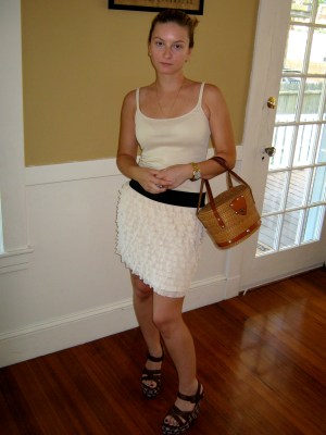 (shoes: Miu Miu, skirt: Free People, tank top: JCrew, purse: vintage, watch: Citizens)