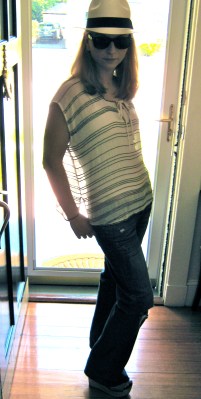 This past weekend I decided to combine two of my latest acquisitions: a floaty, beaded Gryphon top and a Panama hat. I’ve always thought Panama hats are so chic in that sipping-mojitos-on-the-French Riviera way. I almost bought the “real” thing in Hawaii once but the price tag was a little too much.