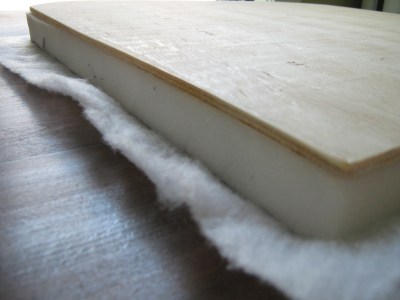 After measuring and cutting the foam to the size of the seat, I glued the two together and added the batting.