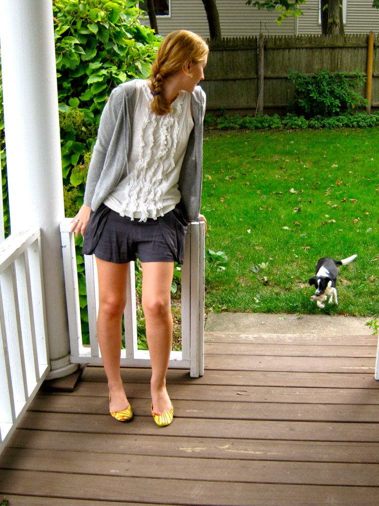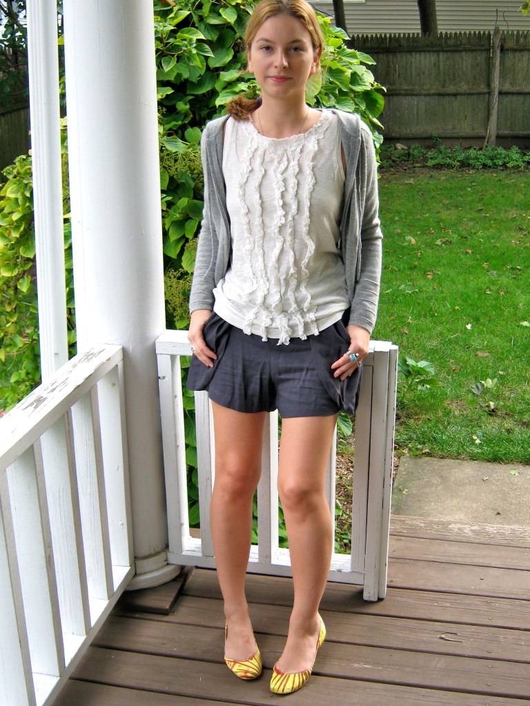 (sweater: vertical design; tank: JCrew; shorts: ModCloth; flats: Seychelles)