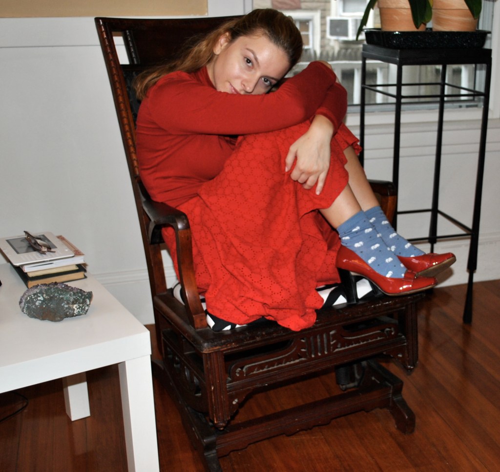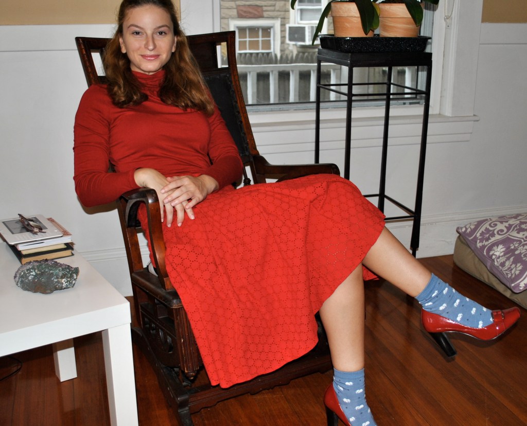 (skirt: gift from mom; socks: Urban Outfitters; patent pumps: Anne Klein)