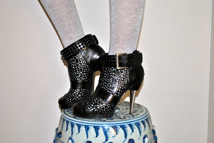 I’ll start with my very first “fashion” shoe purchased at the beginning of 2010. These Barbara Bui booties are a testament to Italian shoe makers’ skill. The laser cut leather, heavy hardware and deadly spike heel say: ” These boots were made for strutting not walking”!