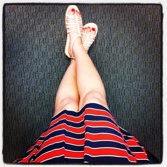 For me, that is like a one-way ticket to Dumpyville. My lower region is made for A-line and full skirts but with my short legs, flats make me look like a female hobbit.(Love how happy these women look walking the red carpet with 6 months worth of leg hair on display. I guess skipping the waxing torture would make me euphoric as well.)