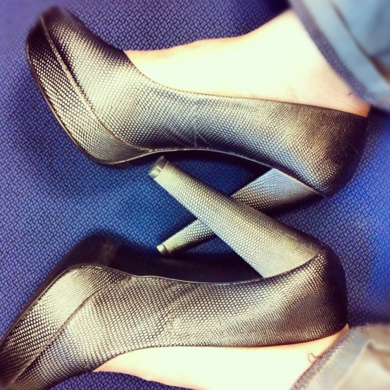 I’ve been struggling lately with a sudden weight gain (stress-related) and putting together office-appropriate outfits that still excite me fashion-wise. My usual slim pants were starting to look a bit “strained” so I started introducing more skirts into the rotation. This led to wearing heels more often and all was well until my chiro recommended giving my feet a break from time to time.:-(